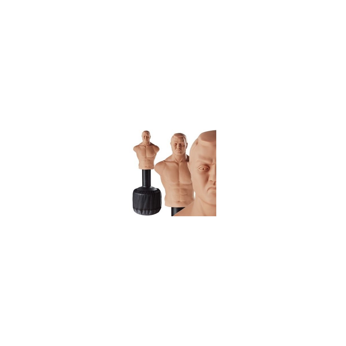 Buste sac de frappe en latex injecté, sur base à remplir d’eau ou de sable.