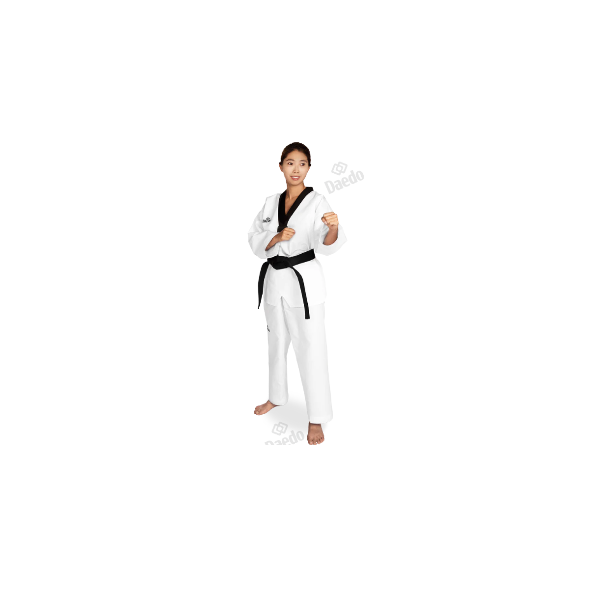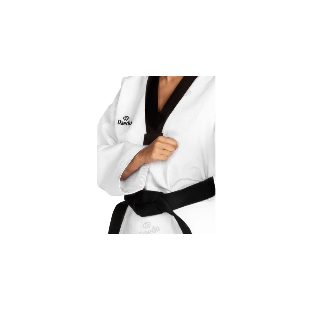 Zwarte kraag Taekwondo-dobok (jas en broek) – Nieuwe lichte prestatietextiel, moderne vervanger van de klassieke TA 1030.